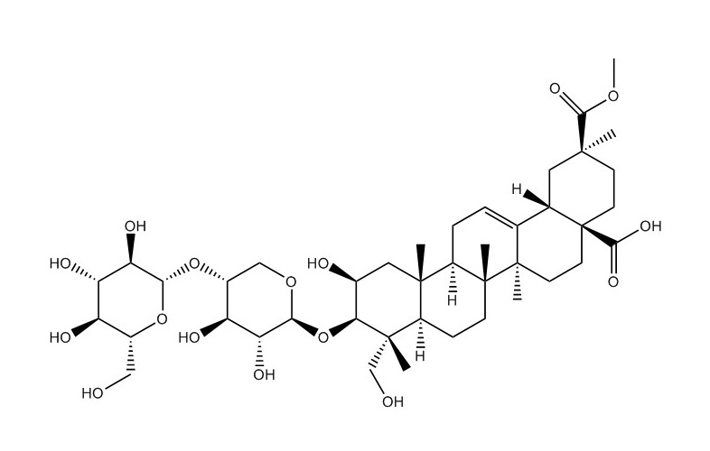 【英文別稱】 (2b,3b,4a,20b)-3-((4-O-beta-D-Glucopyranosyl-beta-D-xylopyranosyl)oxy)-2,23-dihydroxyolean-12-ene-28,29-dioic acid 29-methyl ester